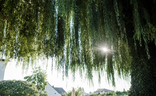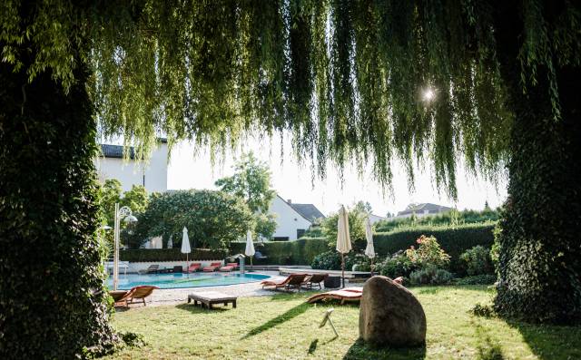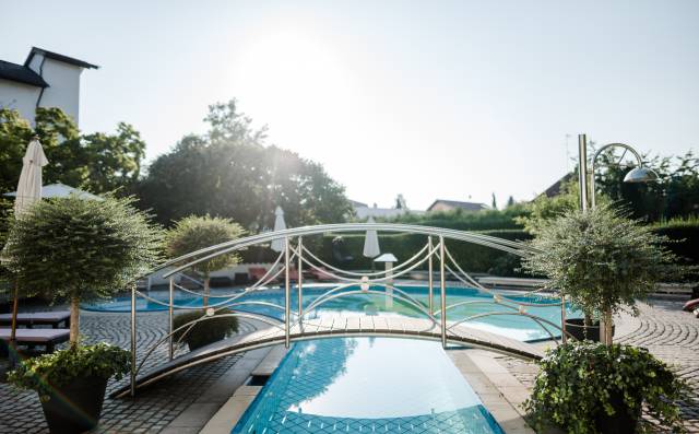 Großer Pool mit grüner Weidenlandschaft im Wellnessbereich des Antoniushofs.Sonnenliegen im Grünen, umgeben von üppiger Natur im Garten des AntoniushofsEin entspanntes Paar lehnt sich lächelnd am Poolrand des Antoniushofs an.Blick auf den Pool und die Hotelanlage des Antoniushofs im SonnenscheinFrau steht auf einer Brücke im Hotelgarten des Antoniushofs, umgeben von NaturEin Paar springt voller Freude in den Pool des Antoniushofs.Frau lehnt sich entspannt an den Rand des Außenpools im Antoniushof.Mann entspannt unter einem erfrischenden Wasserstrahl im Außenpool.Paar genießt ein romantisches Picknick und stößt mit Sekt an im Garten des AntoniushofsFrau in einer Yoga-Pose am Pool, umgeben von Blumen und Natur.Frau steht vor hängenden Pflanzen im romantischen Garten des AntoniushofsPaar entspannt sich im Außenpool des Antoniushofs, umgeben von Natur und ruhiger Atmosphäre.
